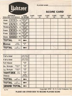 Source: printableyathzee.com See more ideas about printable games, scores, card games. Yahtzee is a development of early dice games and to play this, you need a yahtzee scorecard.